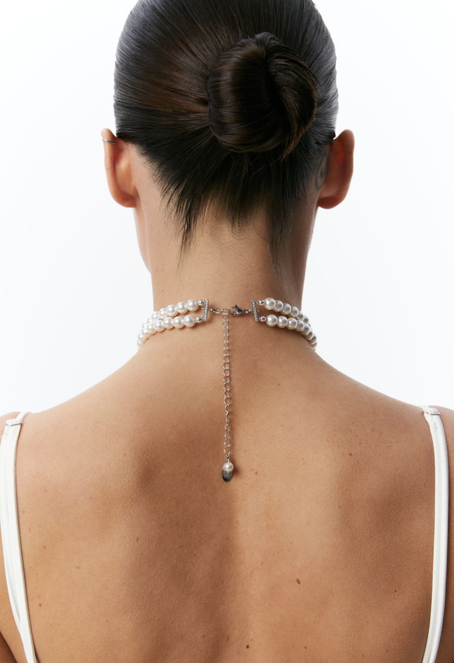 "2 ROWS" CERAMIC BEADS CHOKER SILVER