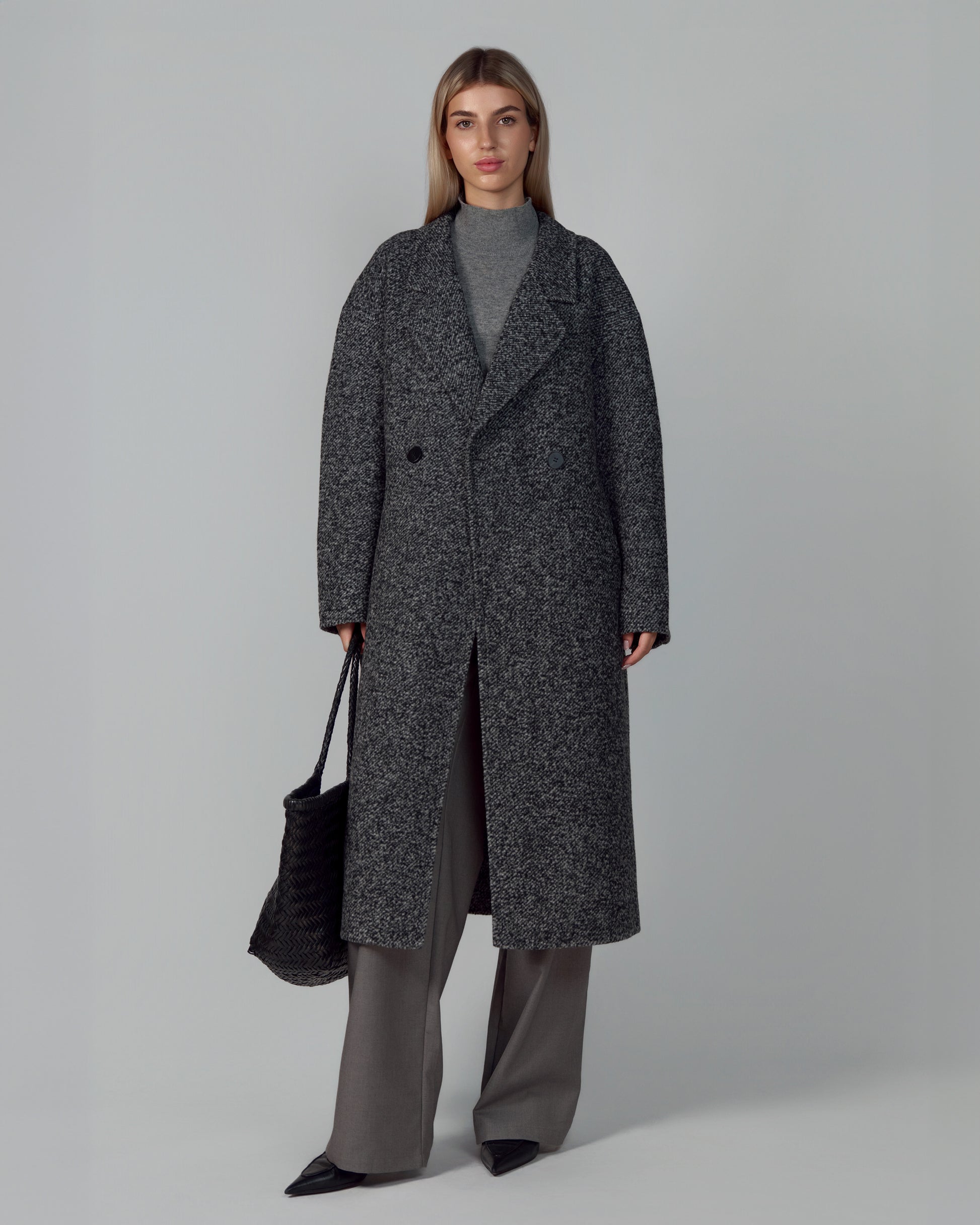 Tailored in pure wool, this coat embodies timeless sophistication with a modern edge. Its clean lines and structured silhouette offer versatile elegance, making it the perfect outerwear piece for both everyday refinement and evening layering.