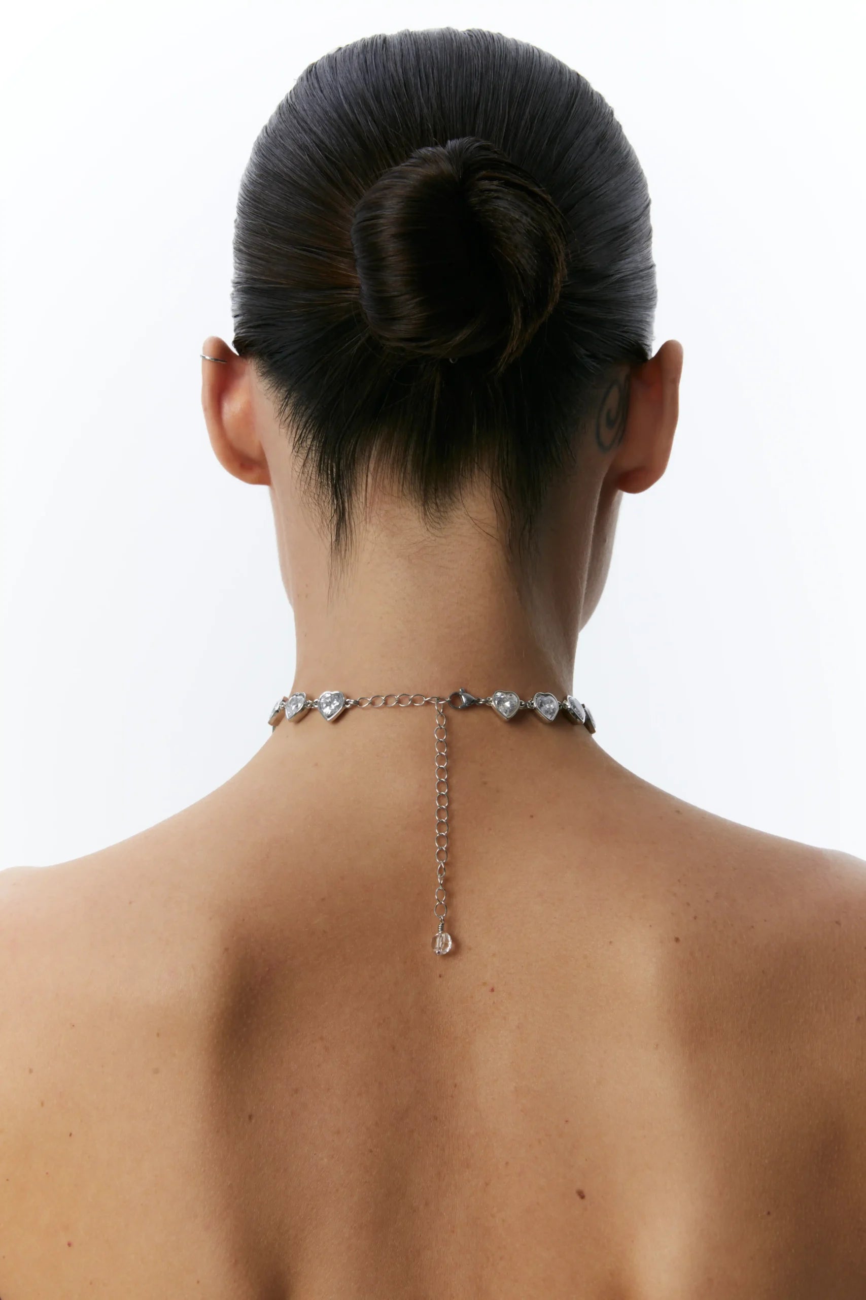 Made of rhodium-plated brass with crystal hearts. Nickel-free. Length: 33 cm + 10 cm extension chain.