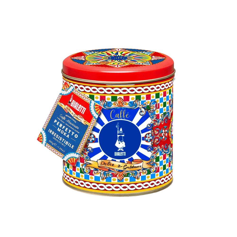 Perfetto Moka Irresistibile coffee is the result of the encounter between the skilful art of Bialetti’s master coffee roasters and the creative flair of Dolce&Gabbana.
