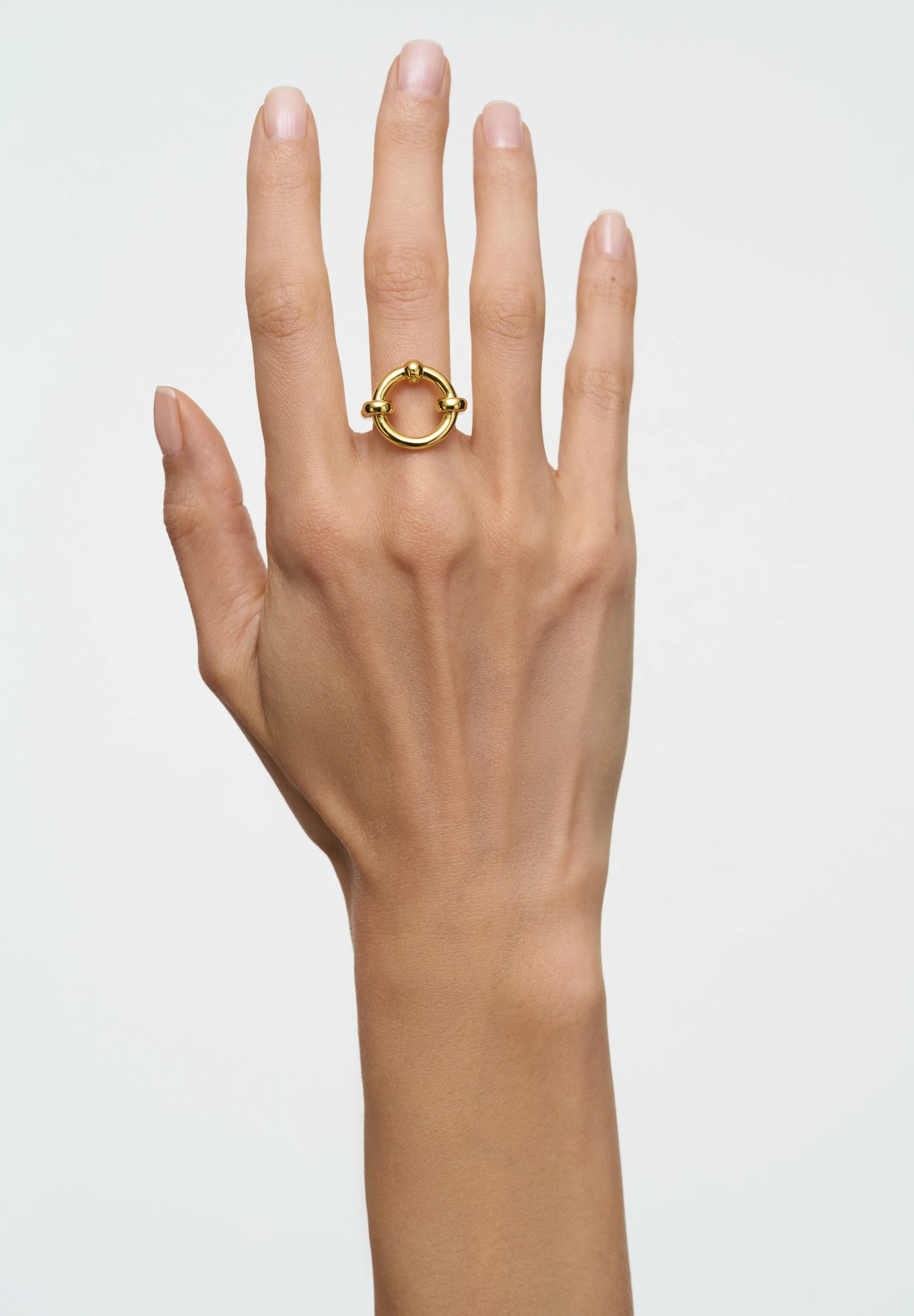 POCHE sleek and effortlessly chic, the Harmony Ring Gold in 18K gold plating offers a minimalist yet stylish design. Featuring a bold, flat circle at its center and a modern ball piercing for a subtle edge, this ring exudes understated elegance. Crafted from eco-friendly brass, the polished gold-plated band ensures both comfort and timeless style. Perfect for everyday wear, this ring will quickly become your go-to accessory for adding a touch of sophistication to any outfit.