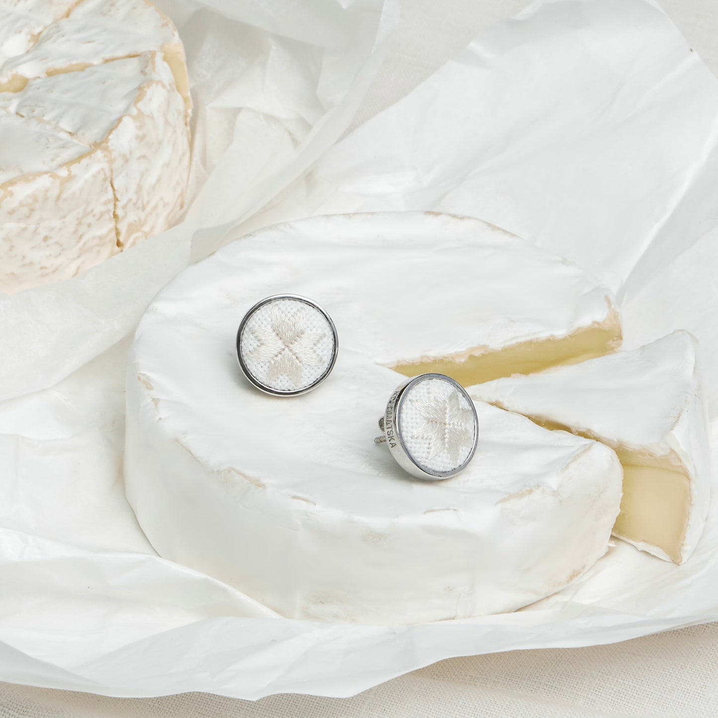 It was in the village of Reshetylivka, in the Poltava region of Ukraine, that the unique embroidery technique of stitching white silk threads onto white fabric was born. The uniqueness of these embroidered earrings lies not only in their ornament but also in the intricate craftsmanship required to create them. This technique demands exceptional precision and patience — each pair is hand-embroidered by our artisans over the course of six hours.