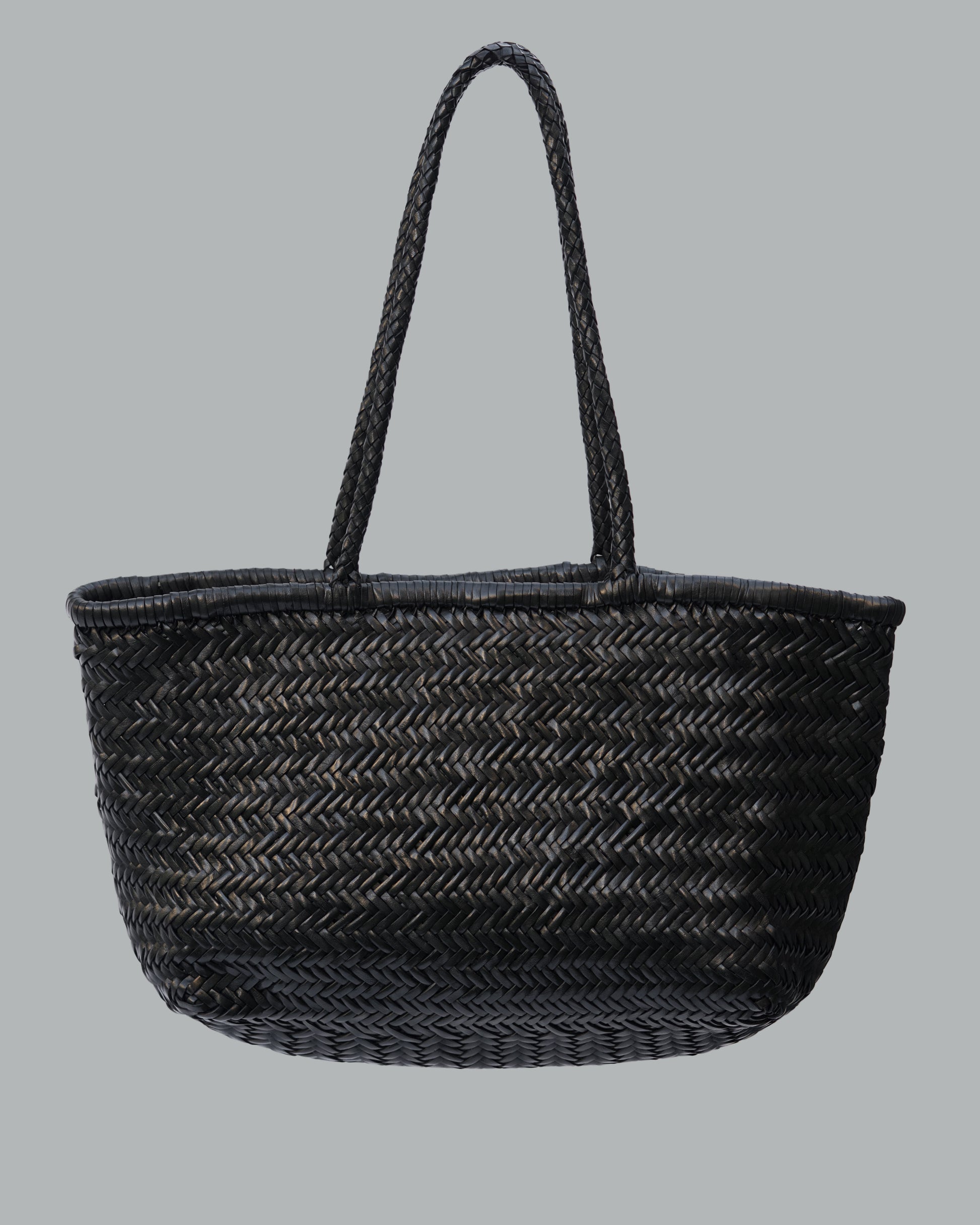 An ode to Italian craftsmanship. This handmade bag is woven from supple black leather using the traditional intrecciatotechnique — a signature of timeless luxury and artisanal precision. Its soft structure and minimalist silhouette make it an effortless statement piece, blending everyday functionality with refined elegance. Designed to age beautifully, it embodies the essence of quiet sophistication.